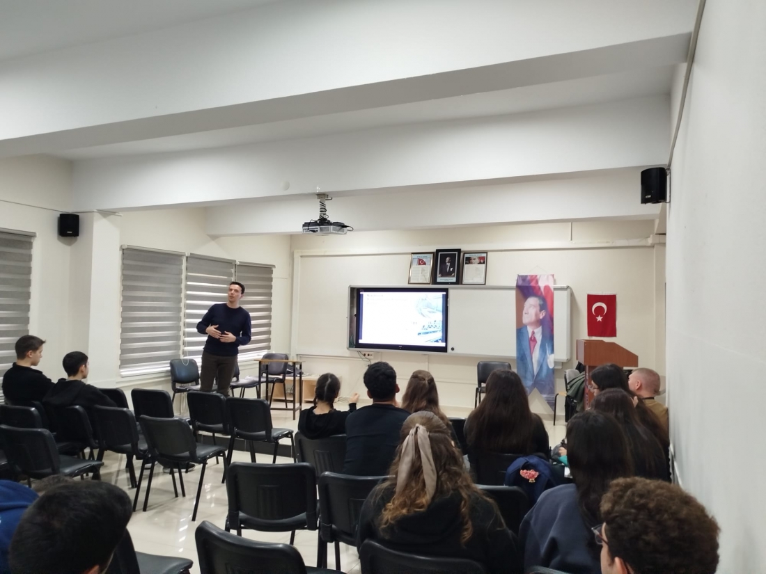 28 Kasım 2025 tarihinde Dr. Öğr. Üyesi Eray Yılmazlar, Kırklareli TOBB Anadolu Lisesi’nde öğrencilerle bir araya gelerek Mekatronik Mühendisliği üzerine kapsamlı bir meslek tanıtımı gerçekleştirdi. Etkinlik, lise öğrencilerinin mühendislik alanlarına yönelik farkındalıklarını artırmayı ve gelecekteki kariyer planlamalarına katkı sağlamayı amaçladı.